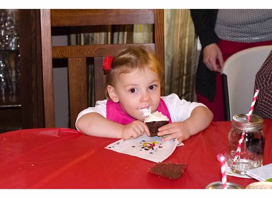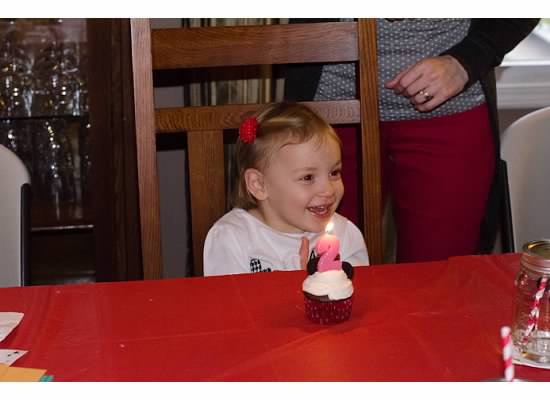 M’s family party this year was Mickey/Minnie themed.  Most decorations were downloaded for free from the web, bought from the dollar store, homemade, and a few things were bought from Etsy.  I made most of the food and the cupcakes, and M loved every minute of it!   Some pictures below…