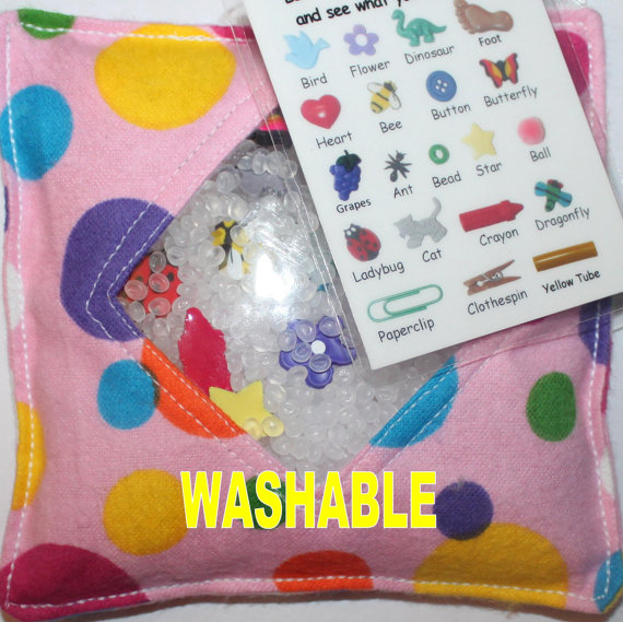 I love quiet activities for M because she is ALWAYS on the go. This worked great for when we were eating out and waiting for our food to come. It’s nice and compact and fits easily in her bag. It’s great to practice M’s fine motor skills and can practice her counting and colors while “catching” the fish.